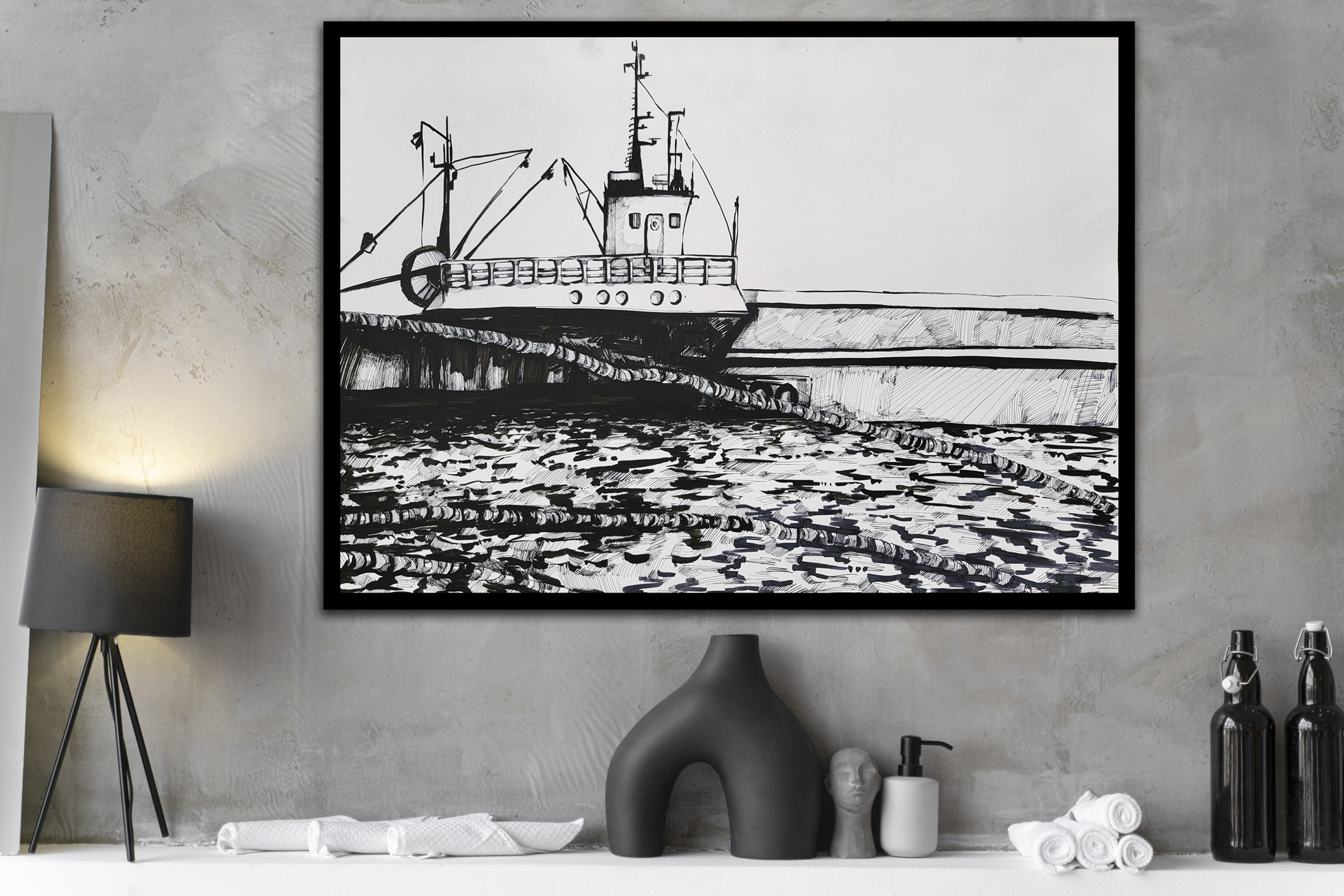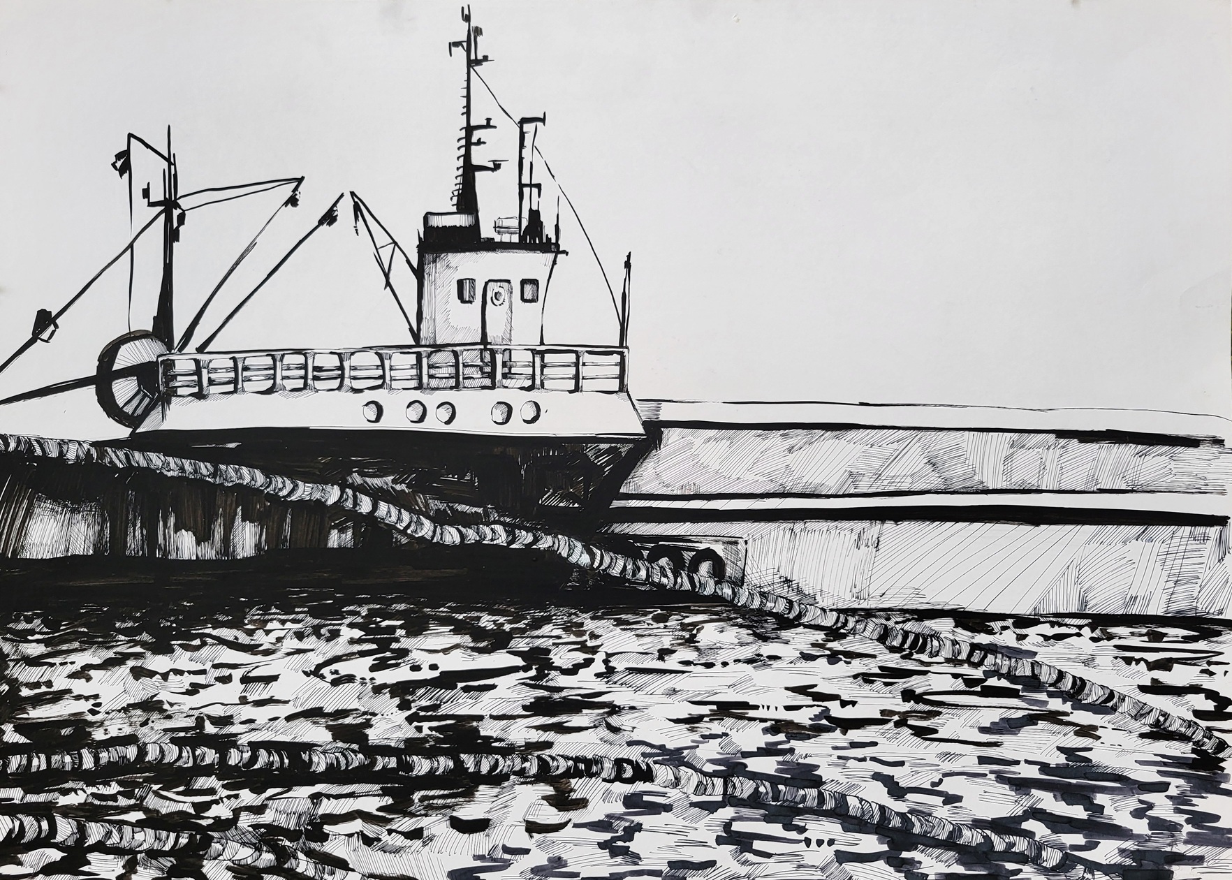 Rysunek „Port we Władysławowie”, Zuzanna Piotrowska, 2014, 70cm x 50cm